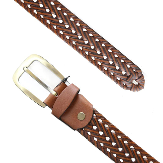 PAKISTAN BELT PRO Elegant Genuine Leather Braided Bel - Brown/Tan