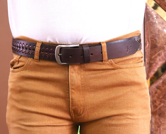 PAKISTAN BELT PRO Elegant Genuine Leather Braided Belt - Brown/Brown