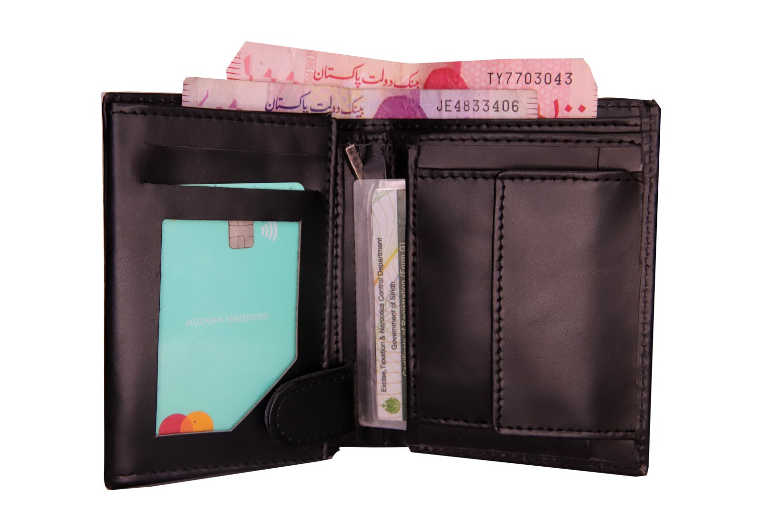 RAWALPINDI WALLET Compact Size Leather Wallet Modish Tri-Fold Leather Wallet Jet Black