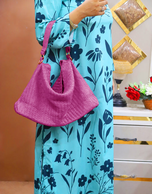 RAIWIND BAG Handwoven Genuine Leather Ladies Tote Bag, Women's Hobo Bag And Shoulder Bag-Pink