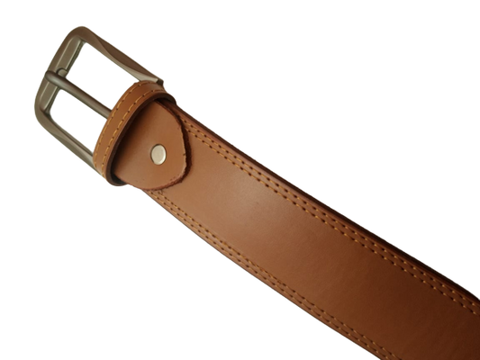 SIALKOT BELT Double Stitched Laminated Leather Belt Causal Leather Belt Tan Brown