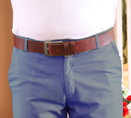 BAHAWALPUR BELT Genuine Vintage Leather Belt in One Piece - Vintage Burgundy