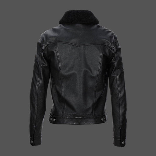 HAFIZABAD JACKET Men's Leather Jacket With Fur Collar (Removeable), Biker Leather Jacket For, Formal & Casual Leather Jacket For Men- Black