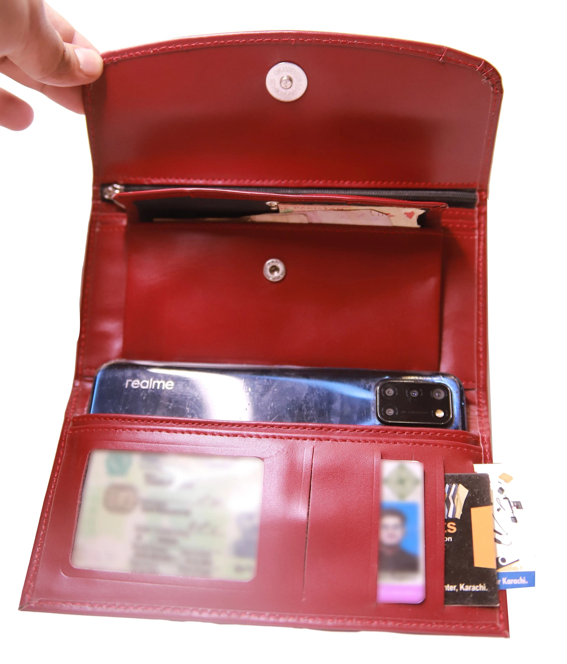 BAHAWALNAGAR CLUTCH All Day Women Essential Leather Clutch in Genuine Cow Leather RED
