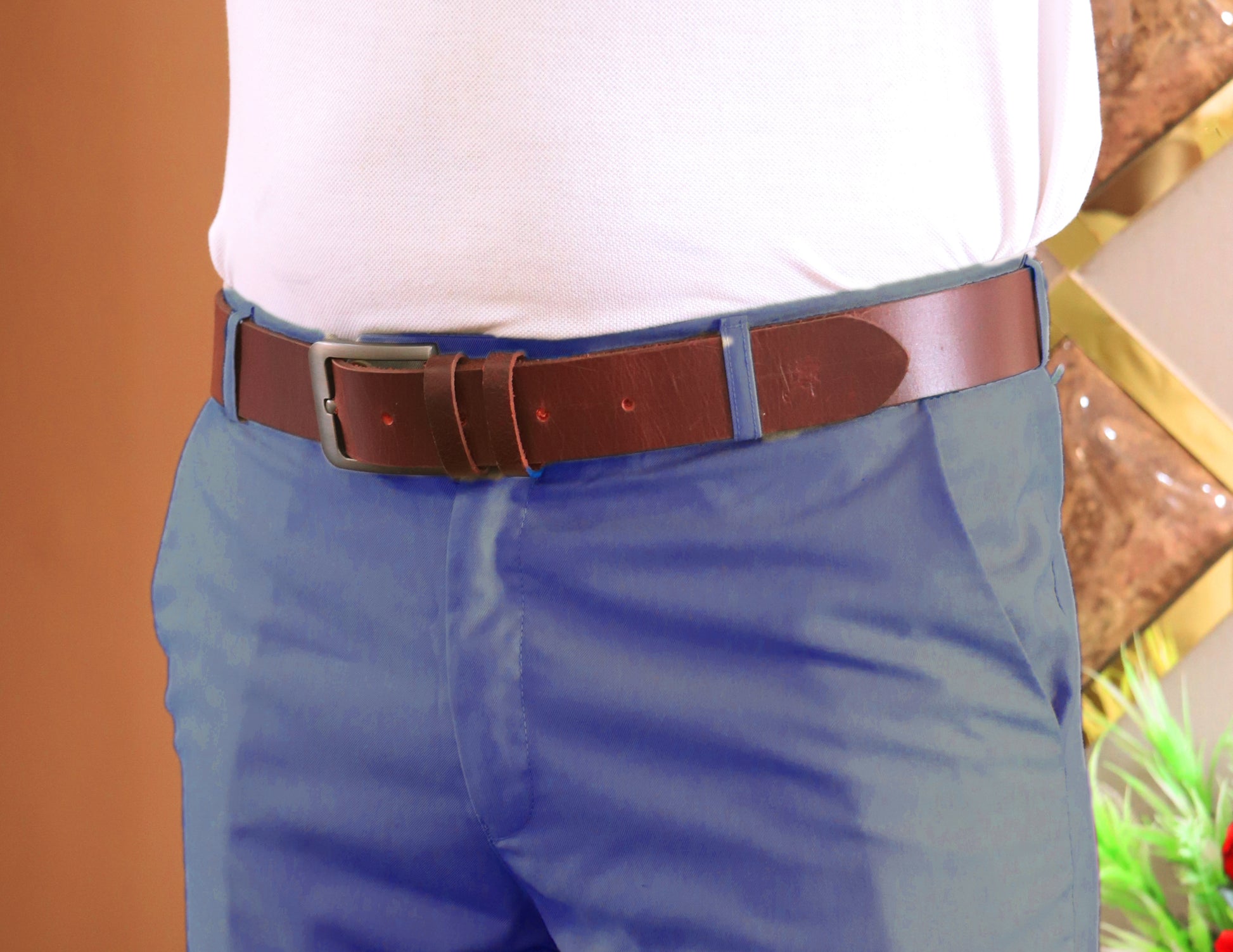 Crafted from a single, uncut piece of full-grain leather, this vintage belt embodies timeless craftsmanship and rugged durability. Each belt features rich natural patina and unique grain patterns that only improve with age and wear, giving it character that’s truly one-of-a-kind. The solid buckle adds a touch of classic style while ensuring long-lasting performance. Whether paired with jeans or dressed up with chinos, this leather belt is a staple accessory that blends heritage quality with everyday function. No stitching, no fillers—just one solid piece of leather built to last a lifetime. ORDERS YOURS VINTAGE BELT WITH SOLID BUCKLE NOW!