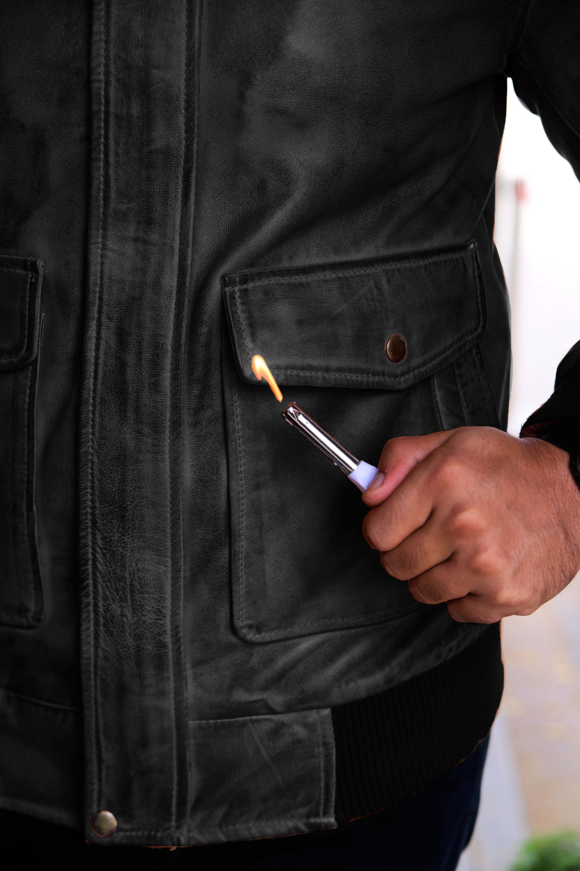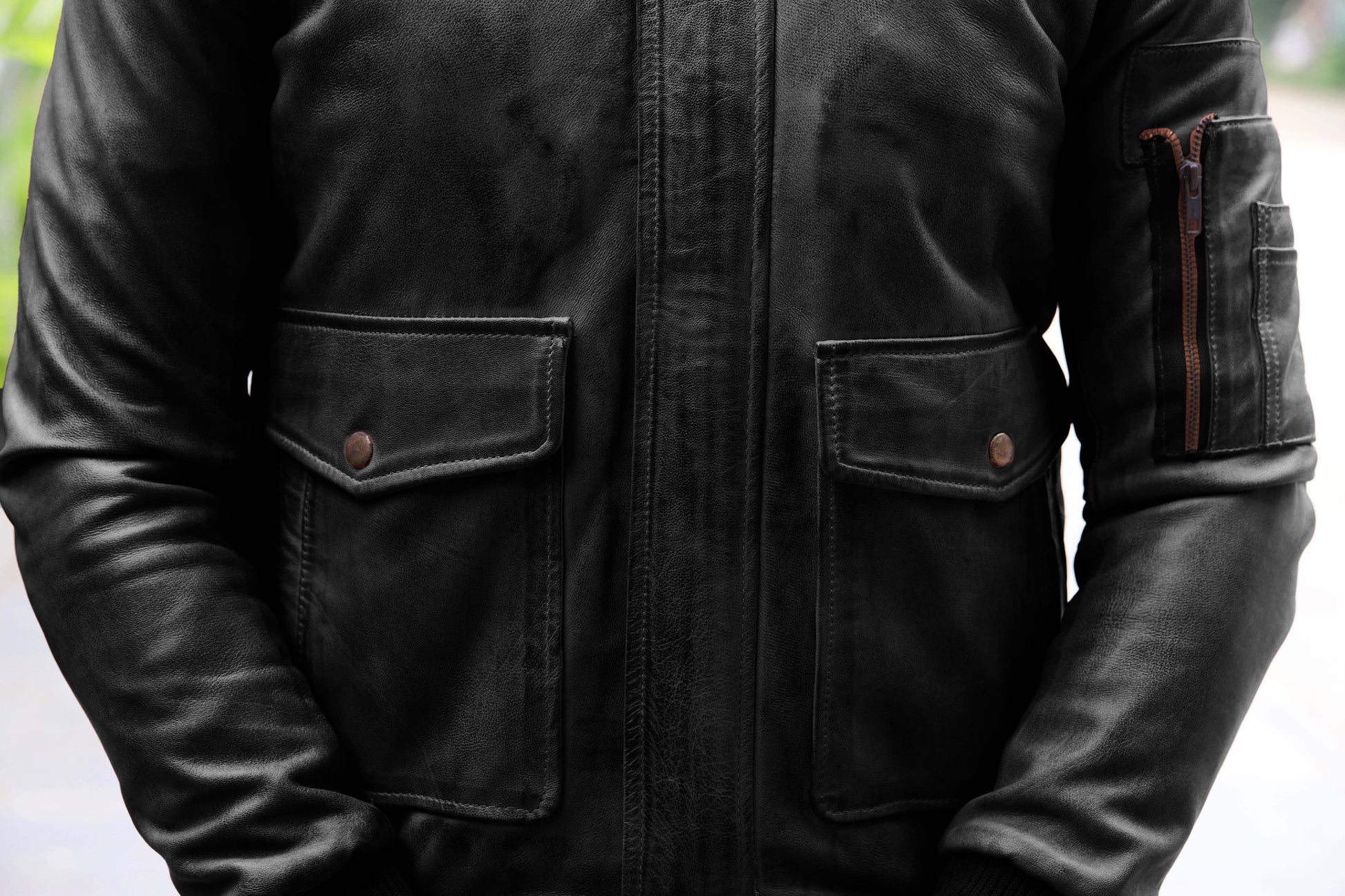 JHELUM JACKET Men's A2 Aviator Bomber Leather Jacket For, Men's Leather Jacket- Black