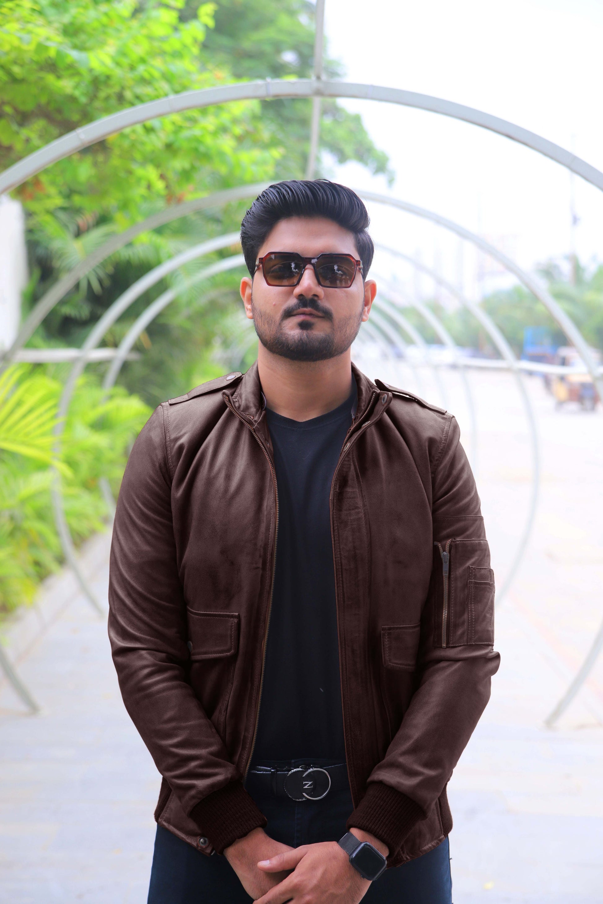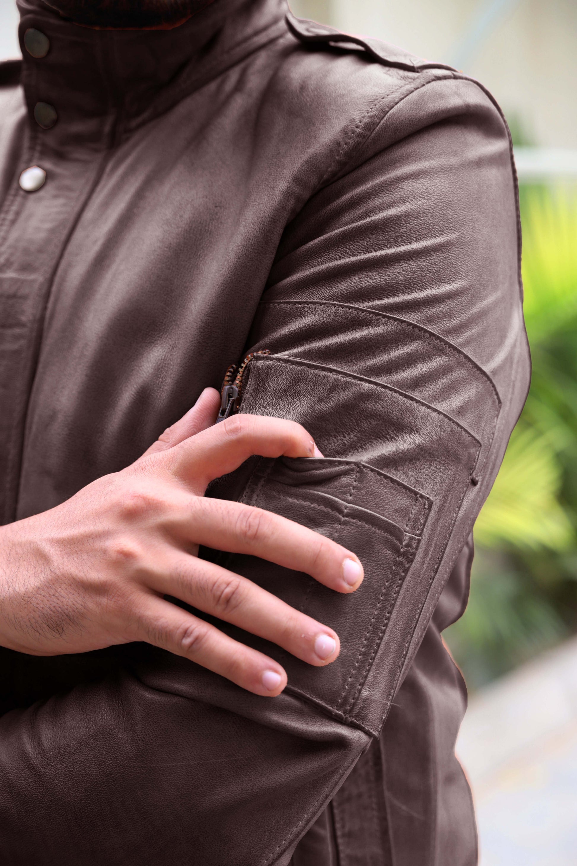 JHELUM JACKET Men's A2 Aviator Bomber Leather Jacket For, Men's Leather Jacket- Brown