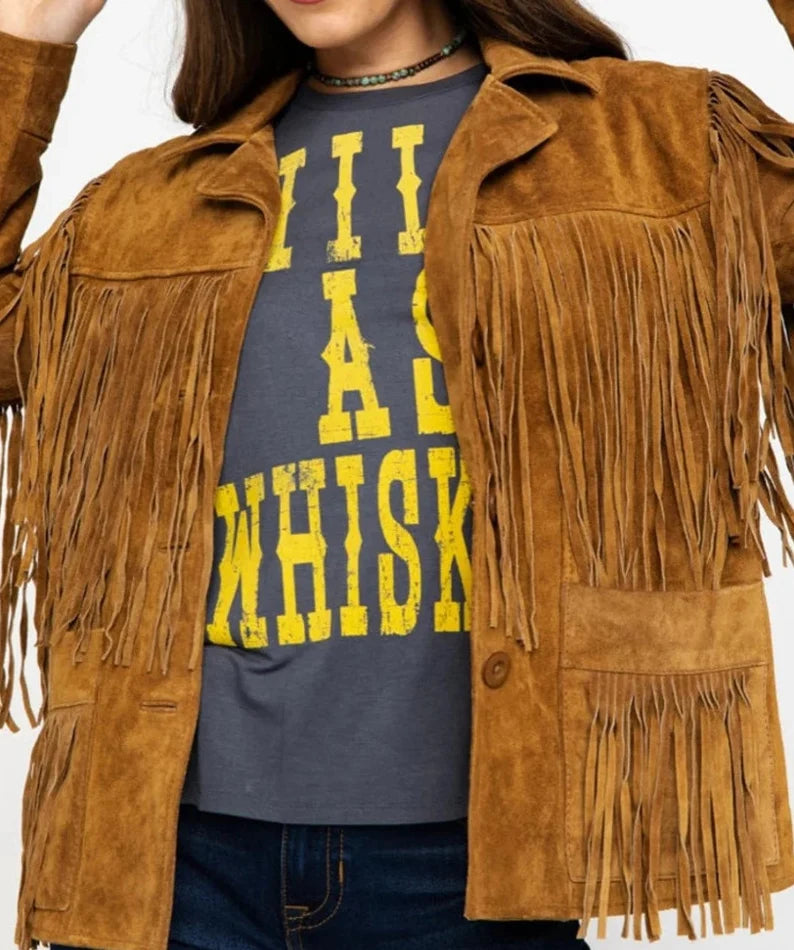 Featuring a classic button closure, tailored fit, and versatile design, this fringe jacket pairs effortlessly with jeans, boots, or dresses for a chic cowgirl-inspired look.