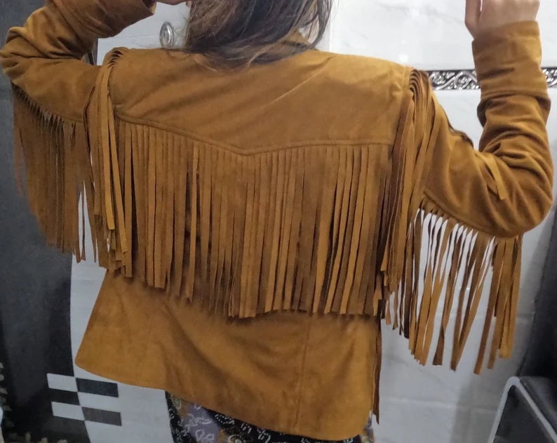 Step into timeless Western style with our Women’s Suede Leather Fringe Jacket, designed for fashion-forward cowgirls and vintage lovers. Handcrafted from premium quality genuine suede leather, this jacket combines comfort, durability, and authentic Western flair.