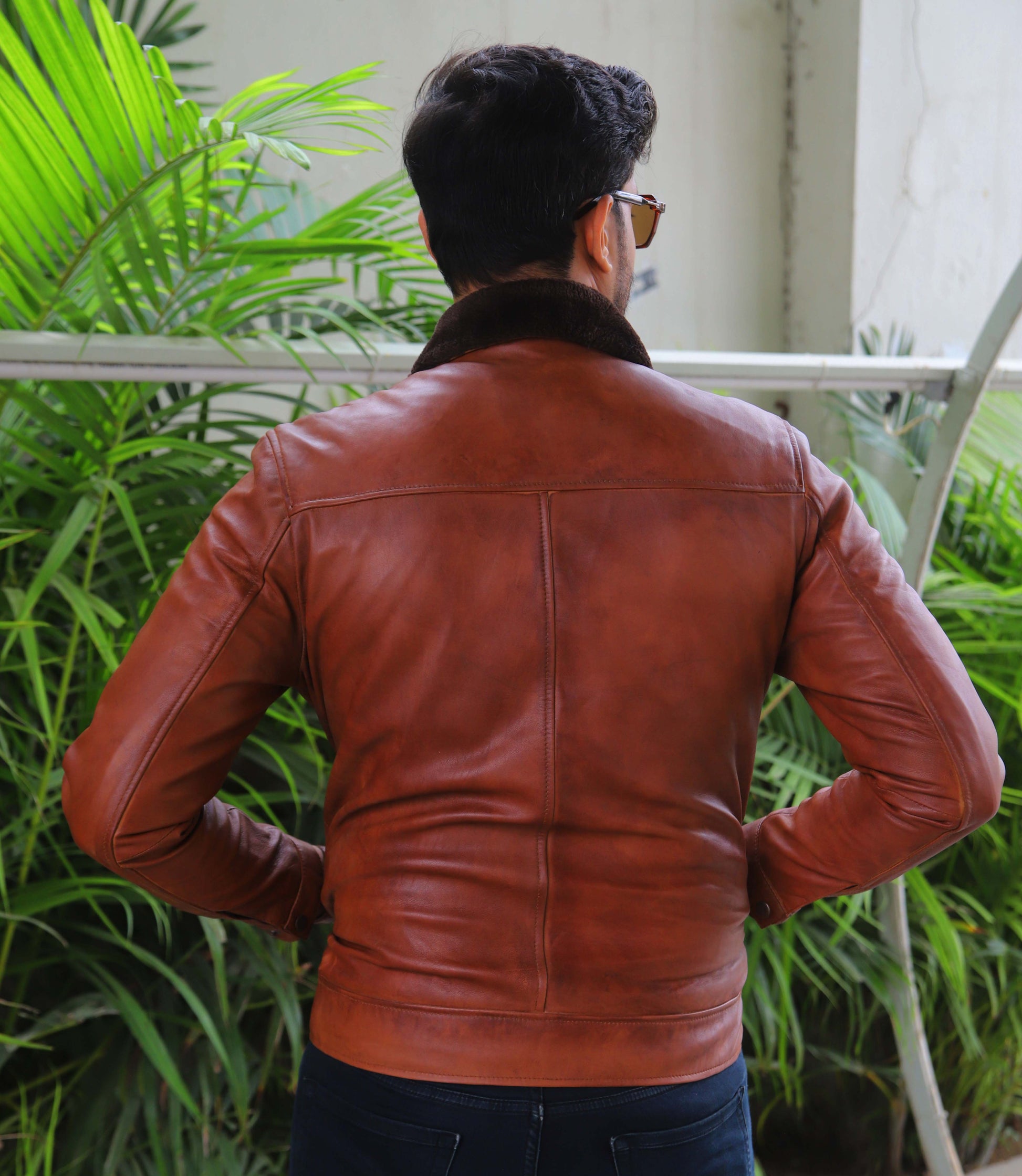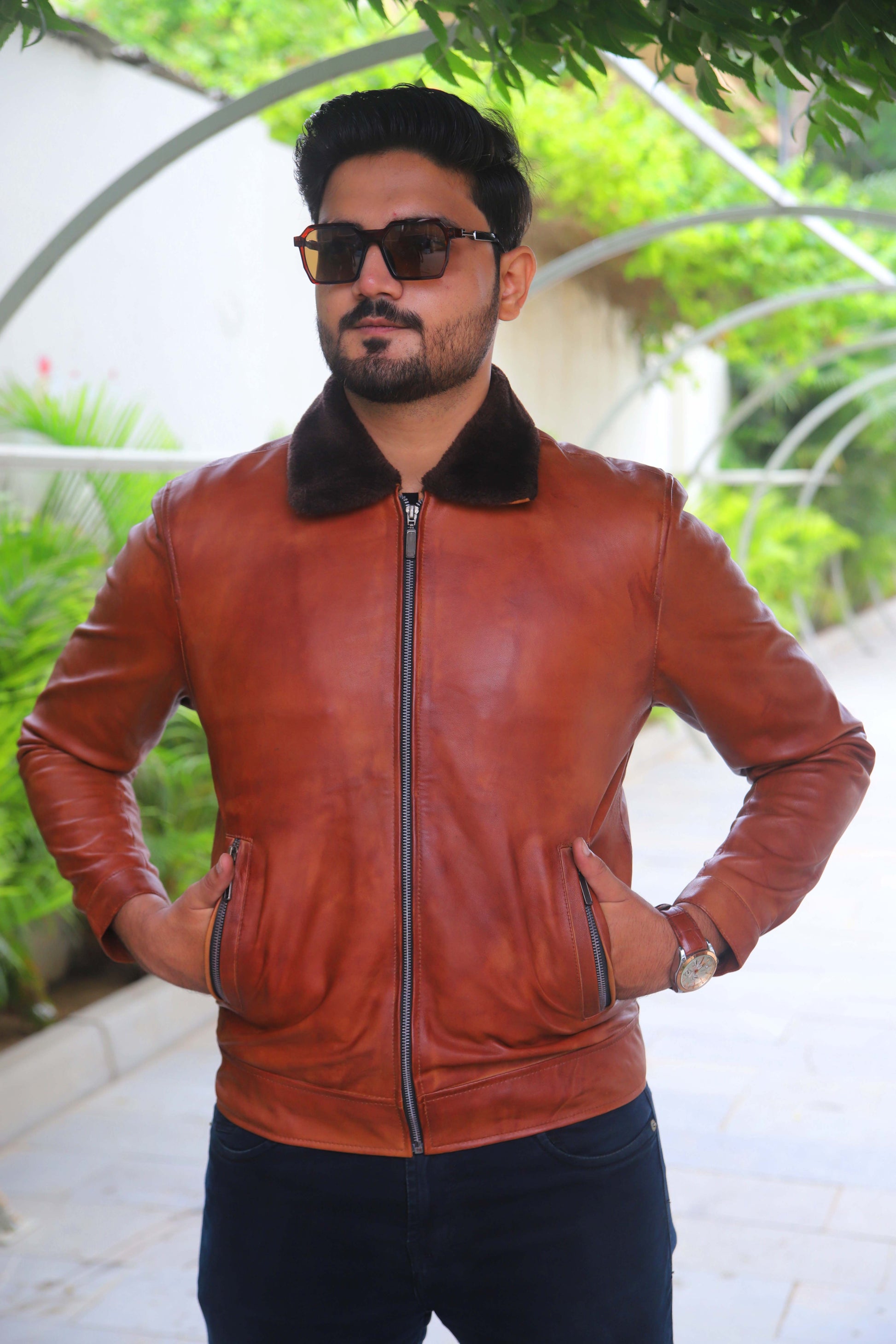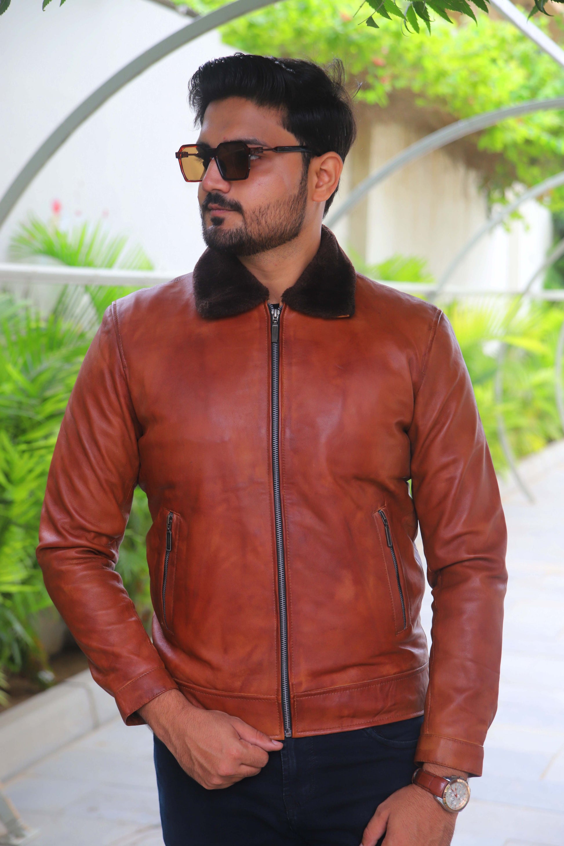KHANIWAL JACKET Men's Leather Jacket With Fur Collar, Motorcycle Leather Jacket For Men, Casual Street Wear Leather Jacket- Distressed Tan