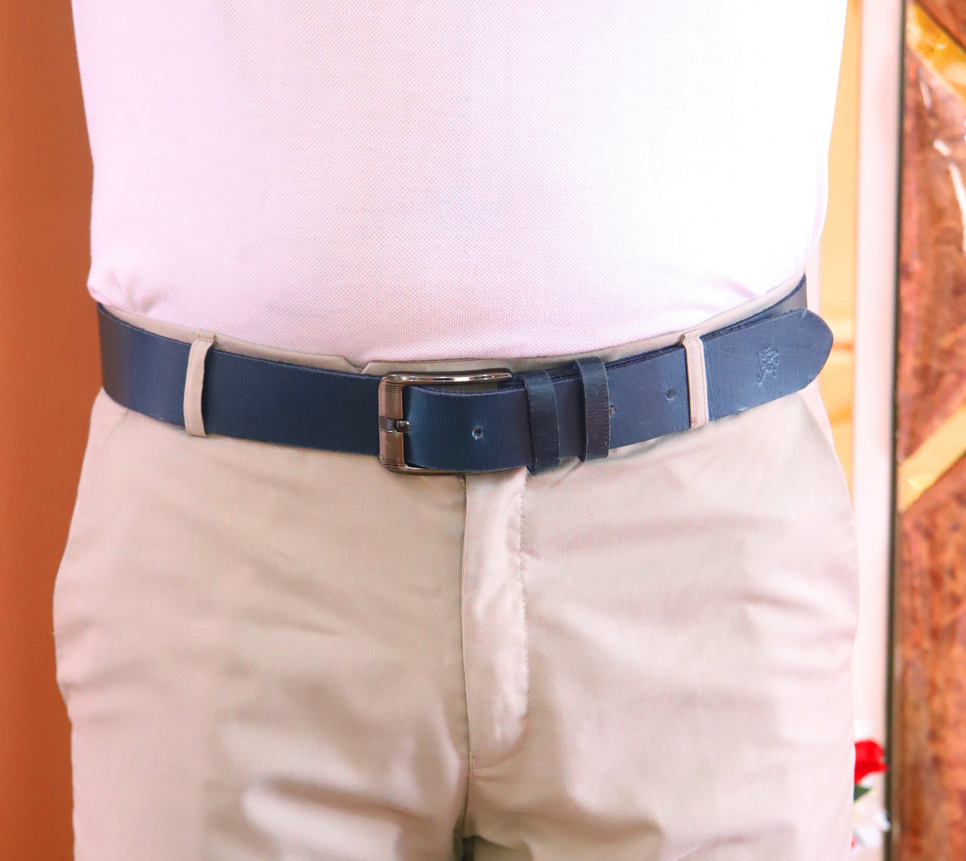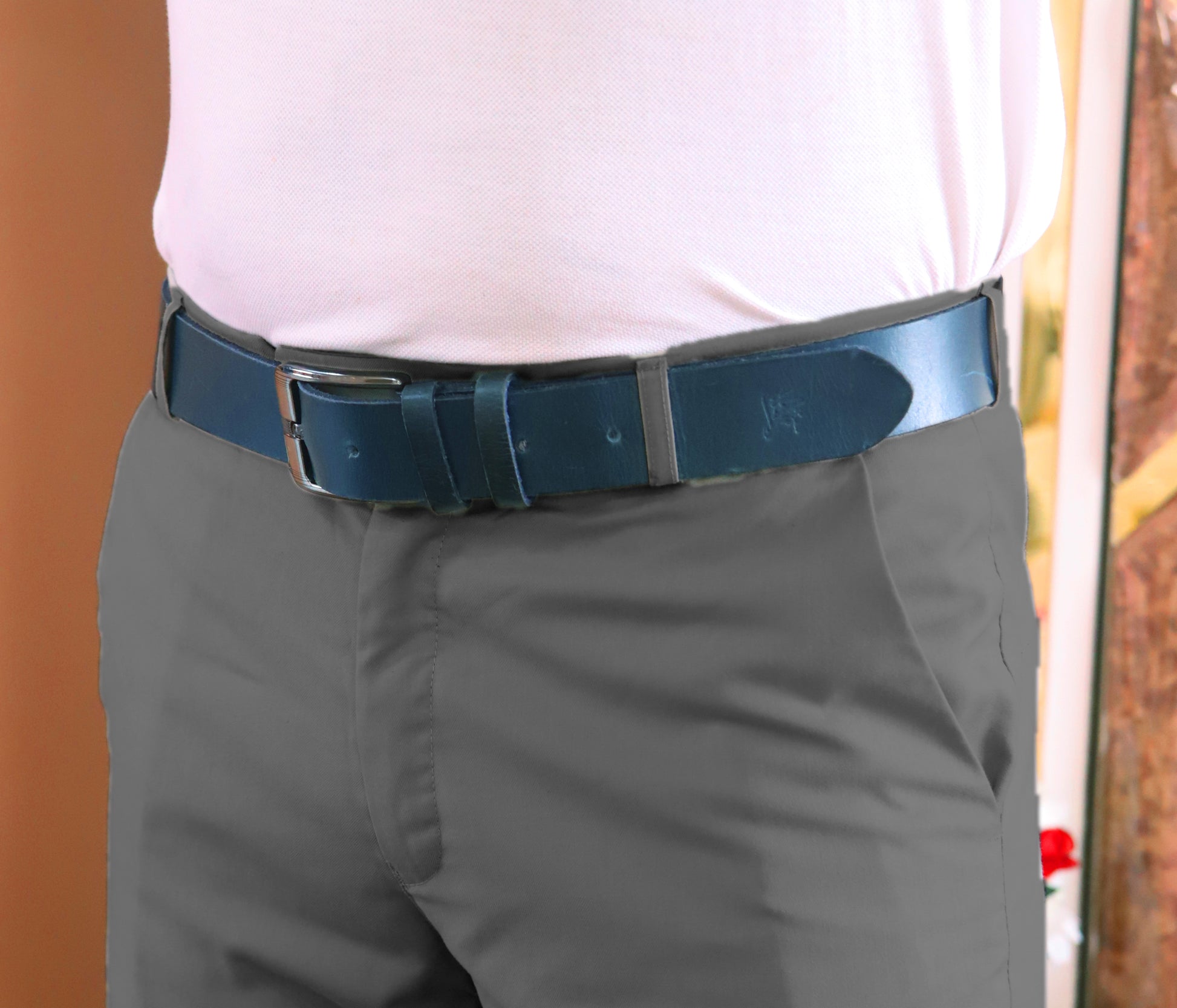 MIANWALI BELT Genuine Vintage Leather Belt in One Piece - Vintage Blue