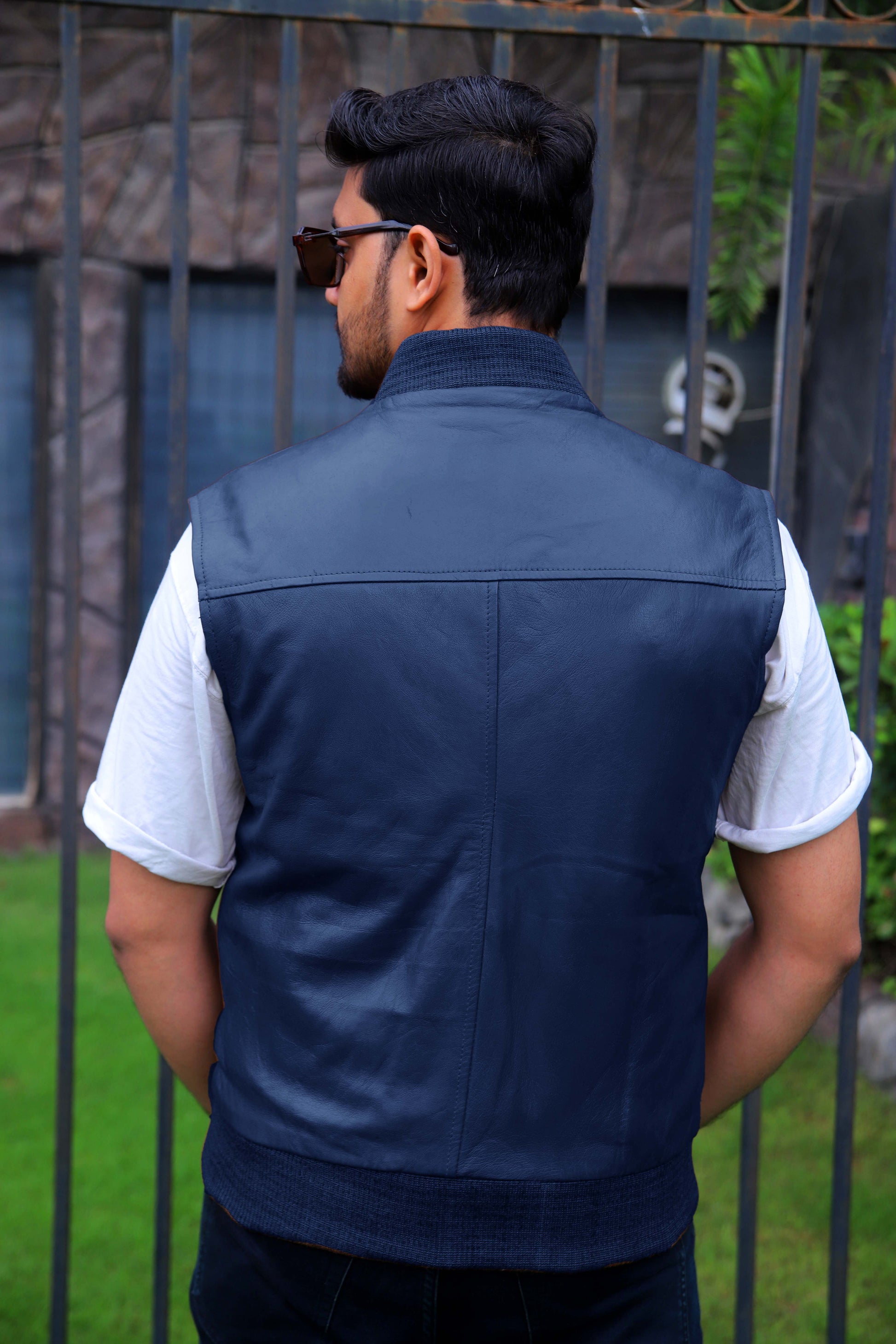 MINGORA JACKET Men's Leather Vest, Formal Leather Vest, Biker Leather Vest, Casual Leather Vest For Men-Blue