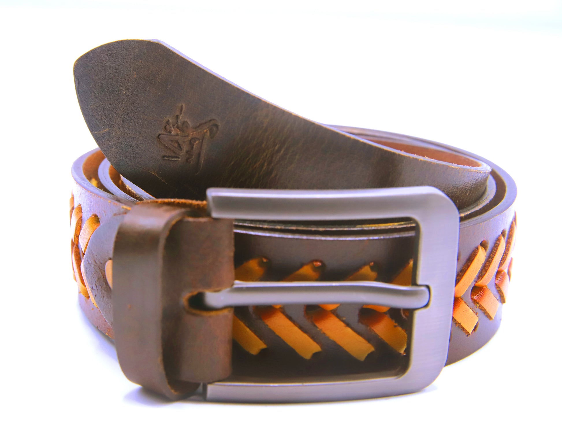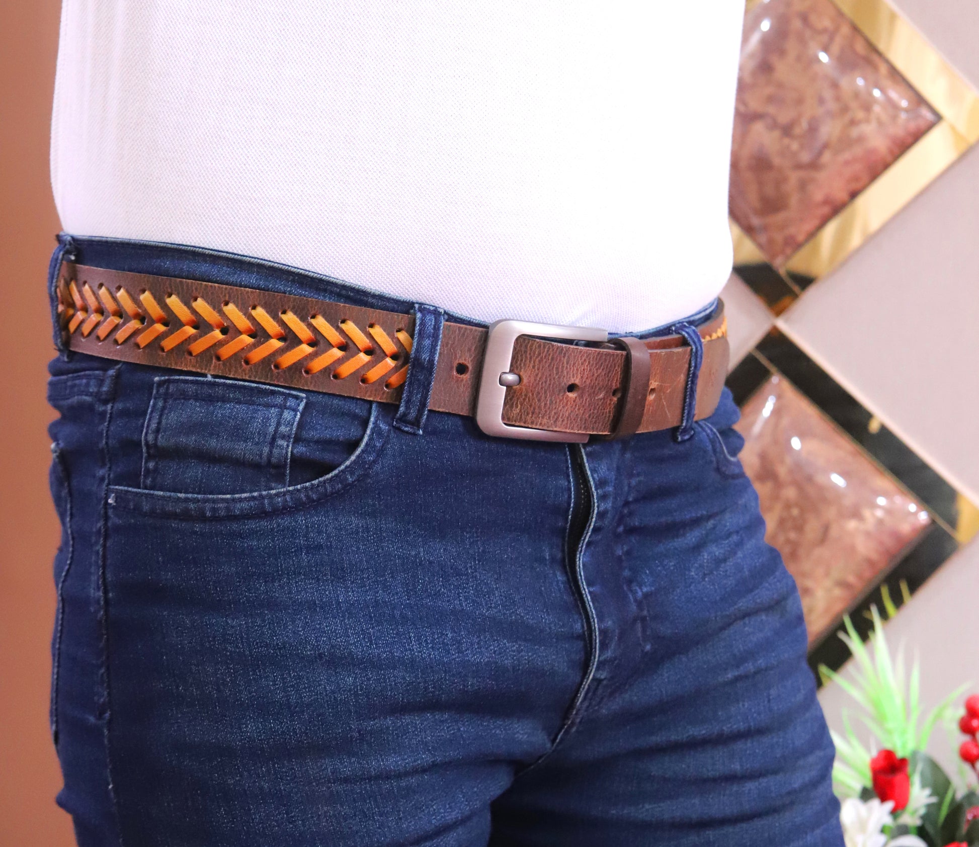 PAKISTAN BELT PRO Elegant Genuine Leather Braided Bel - Brown/Tan