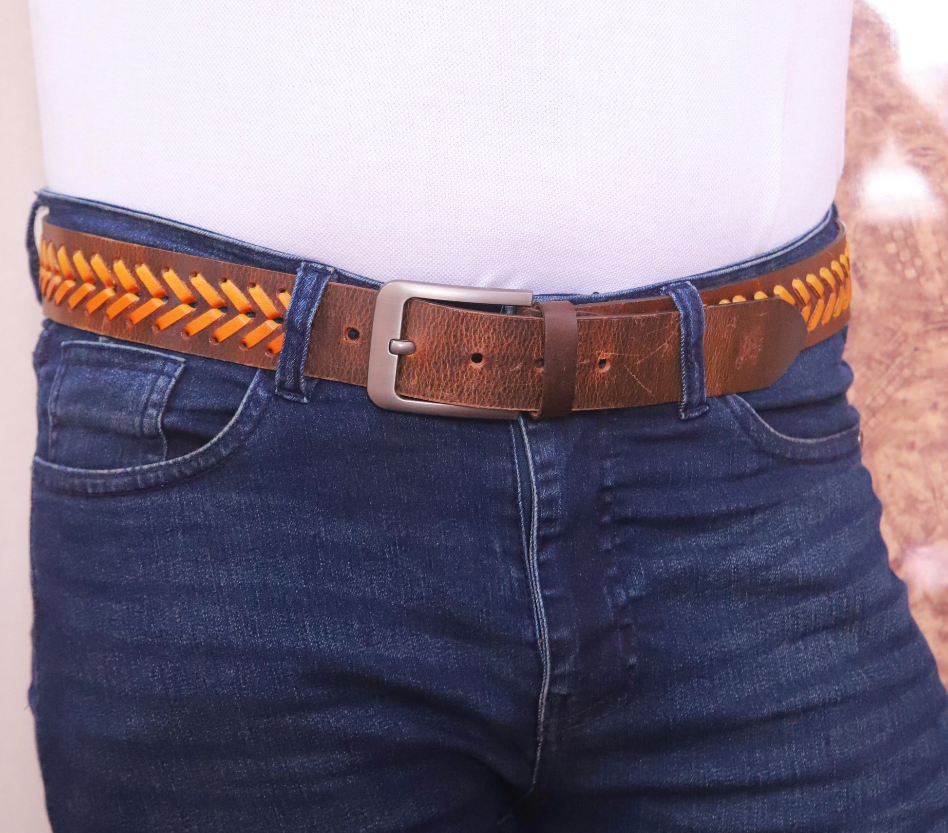 Our Braided Belt with a Silver Tone Buckle made from Genuine Cow Leather (Hand Braided)– the perfect blend of style and craftsmanship.