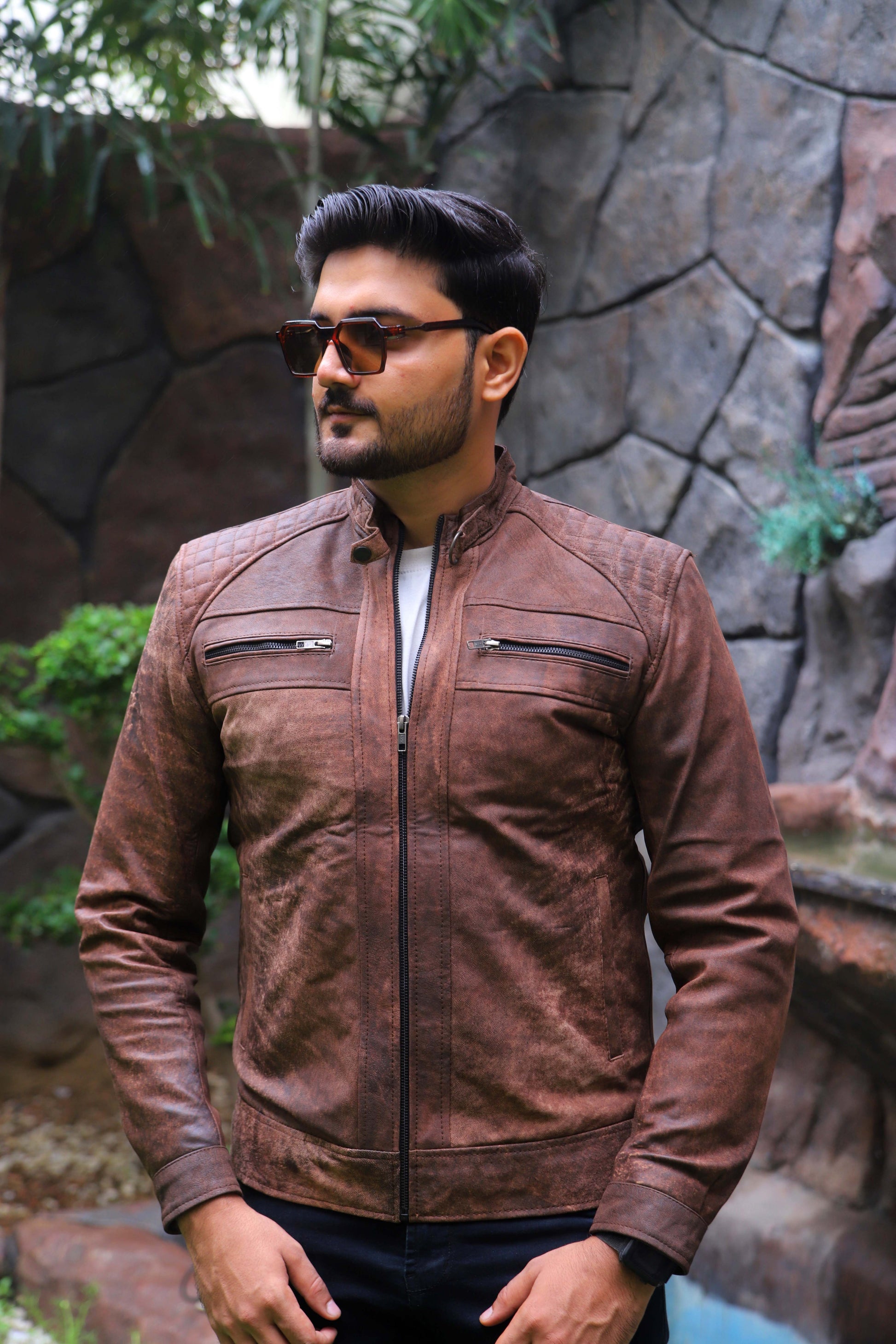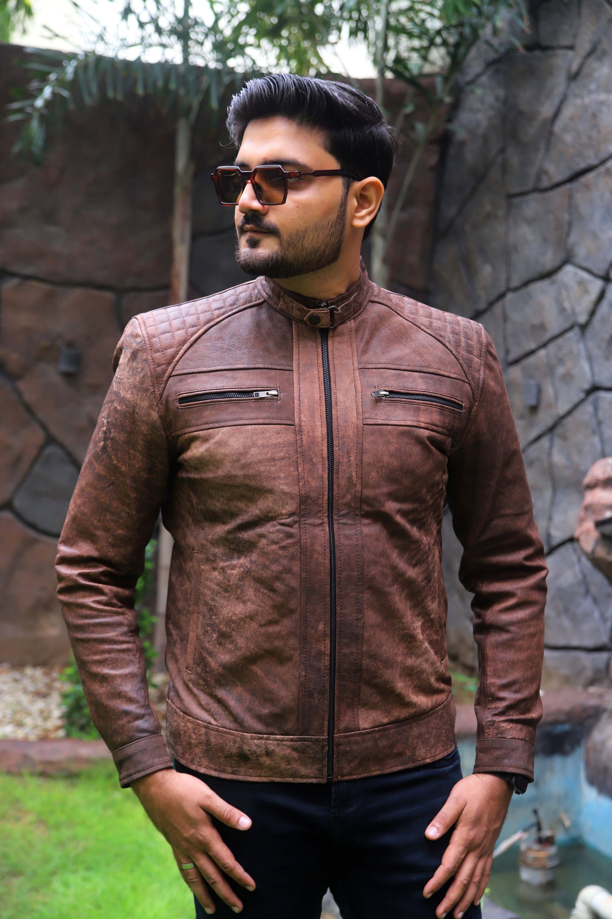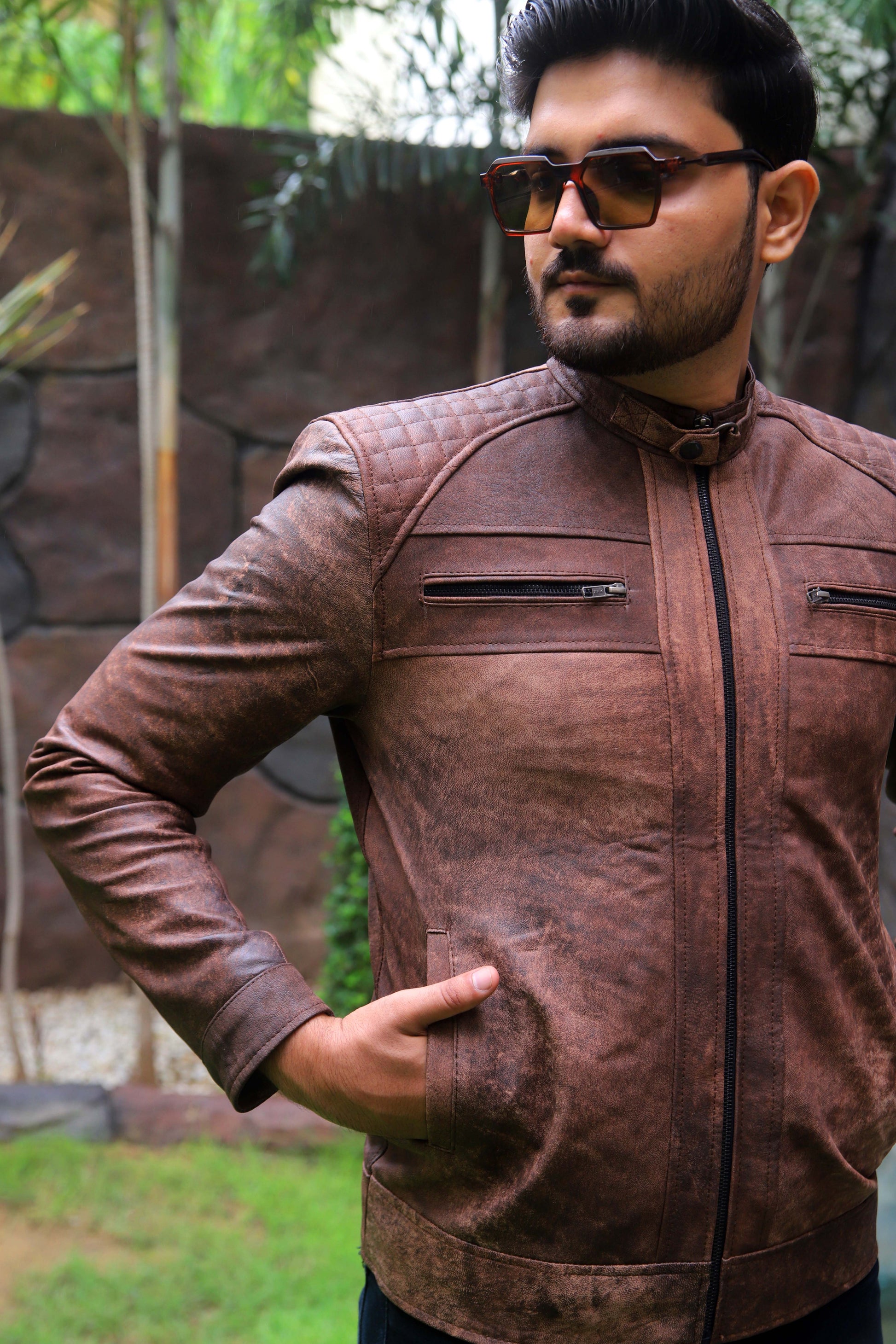 RAHIM YAR KHAN JACKET Men's Leather Jacket, Diamond Style Leather Jacket For Men, Biker Leather Jacket For Men- Distressed Brown