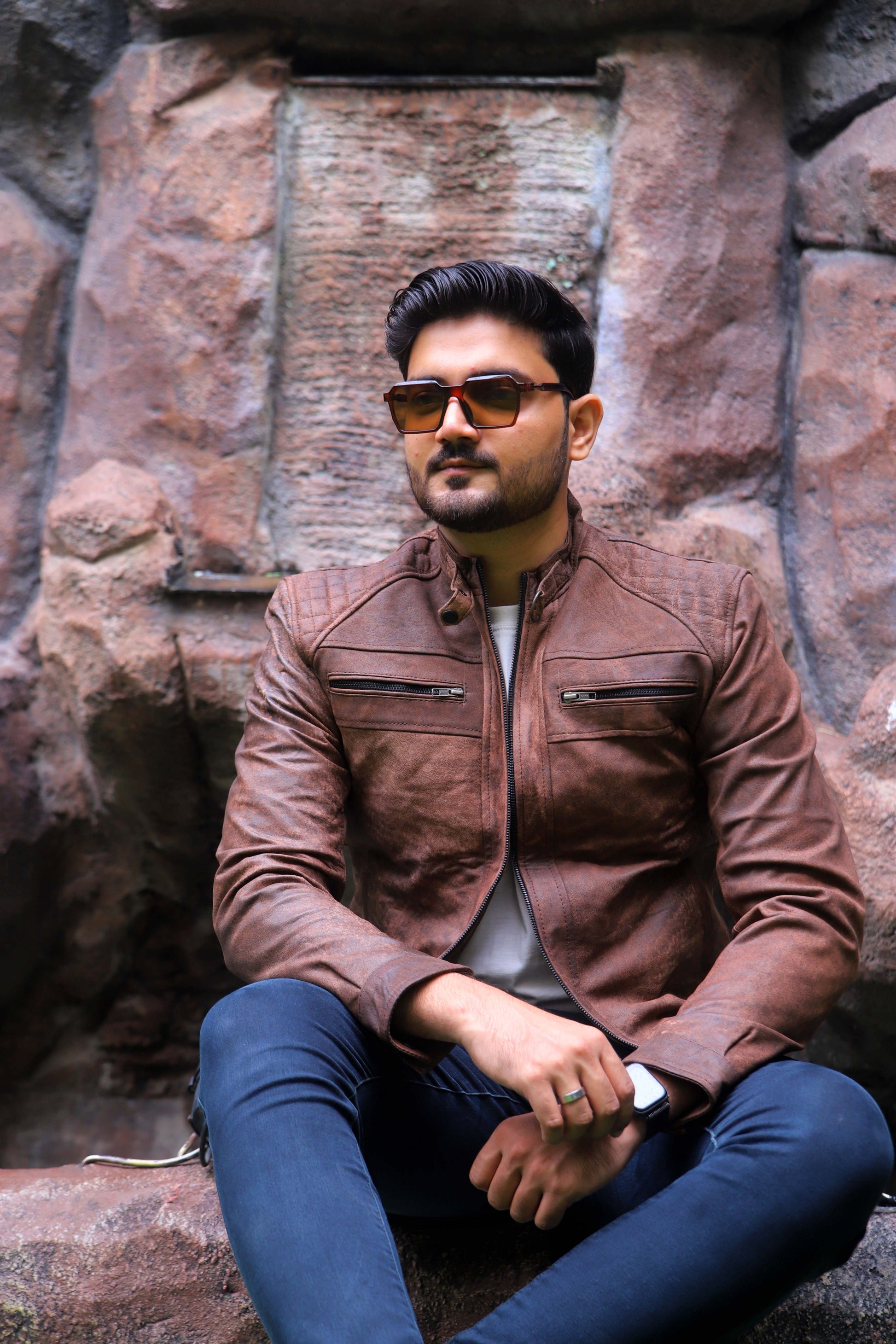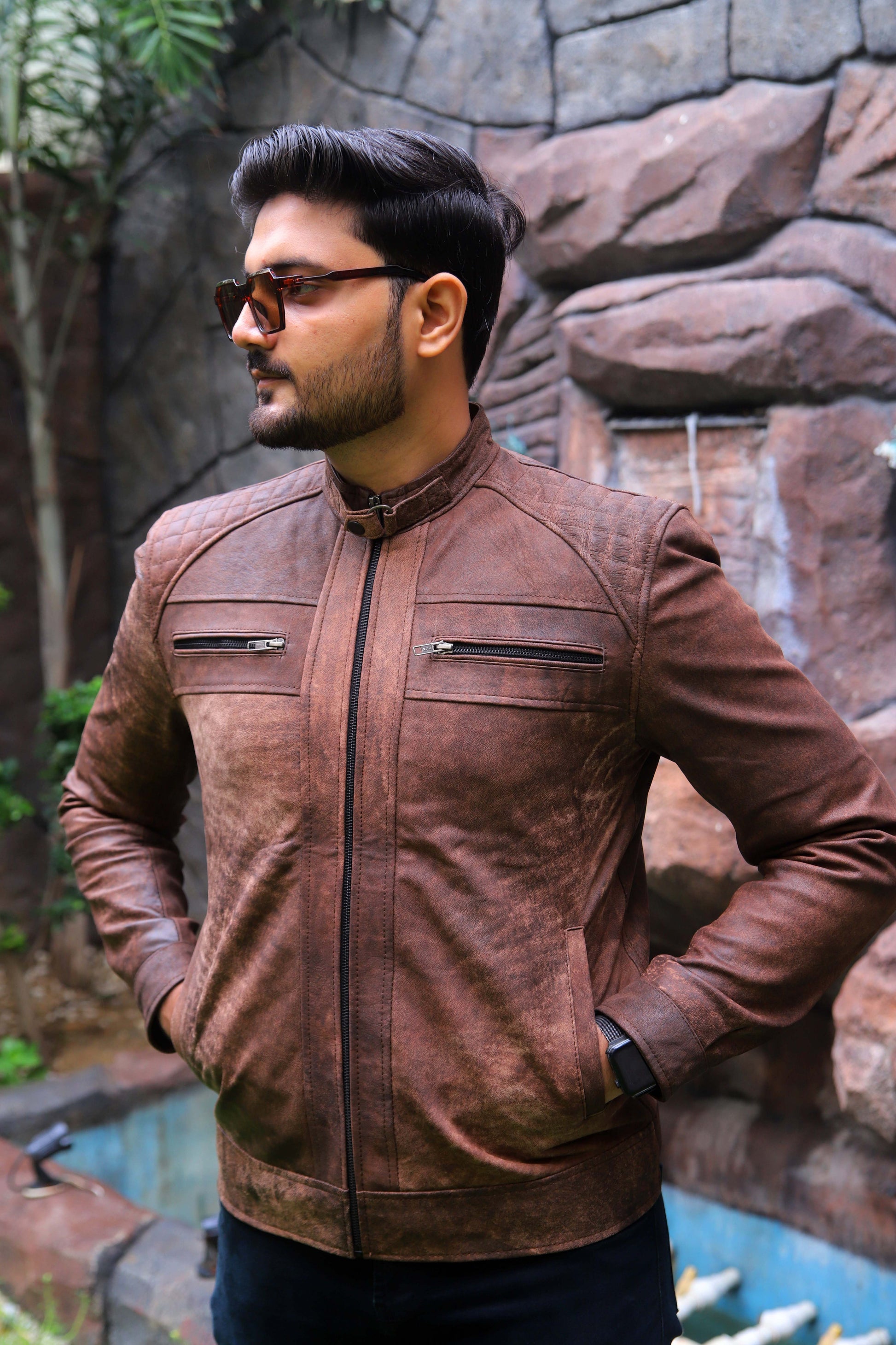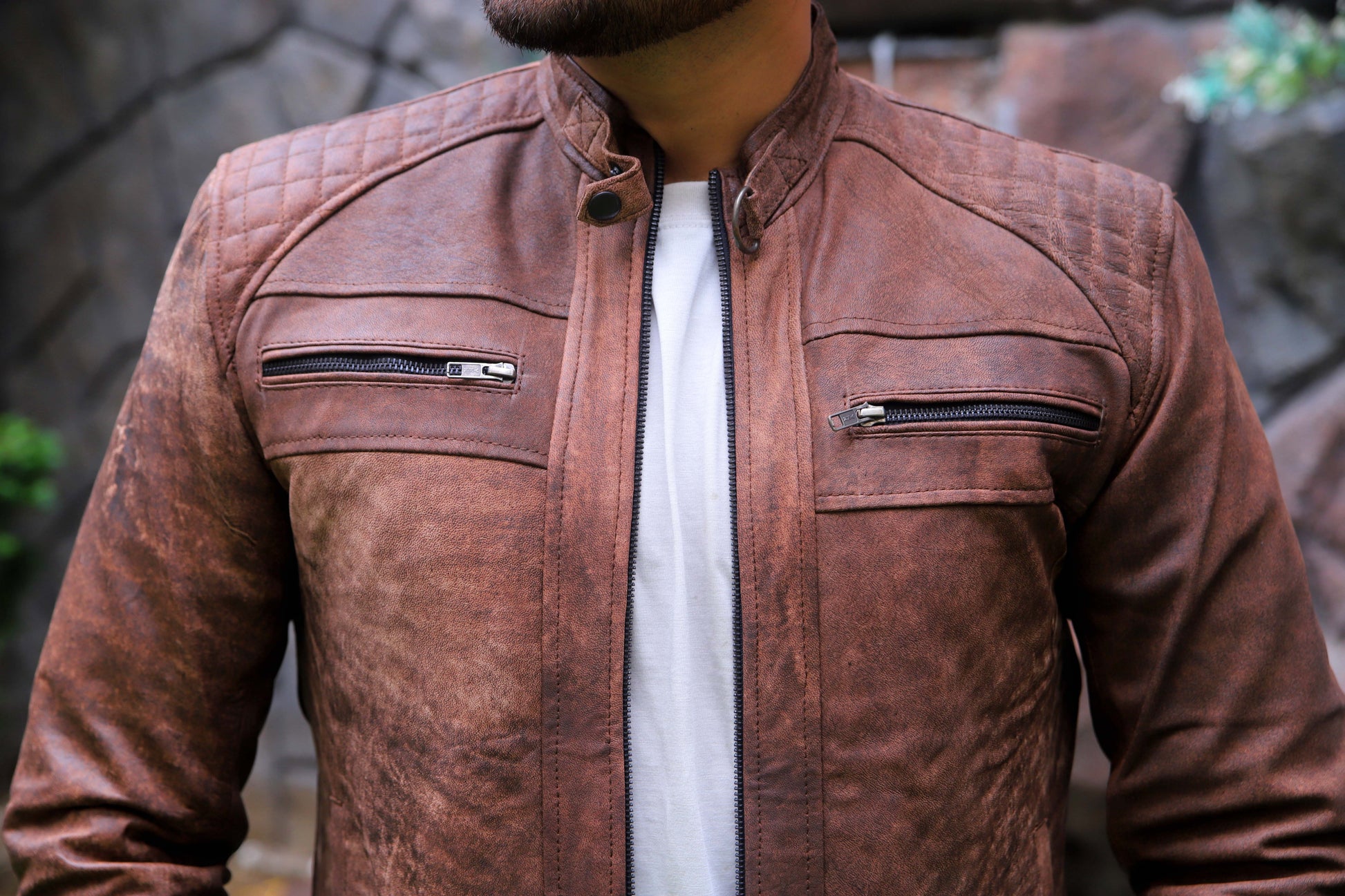 RAHIM YAR KHAN JACKET Men's Leather Jacket, Diamond Style Leather Jacket For Men, Biker Leather Jacket For Men- Distressed Brown