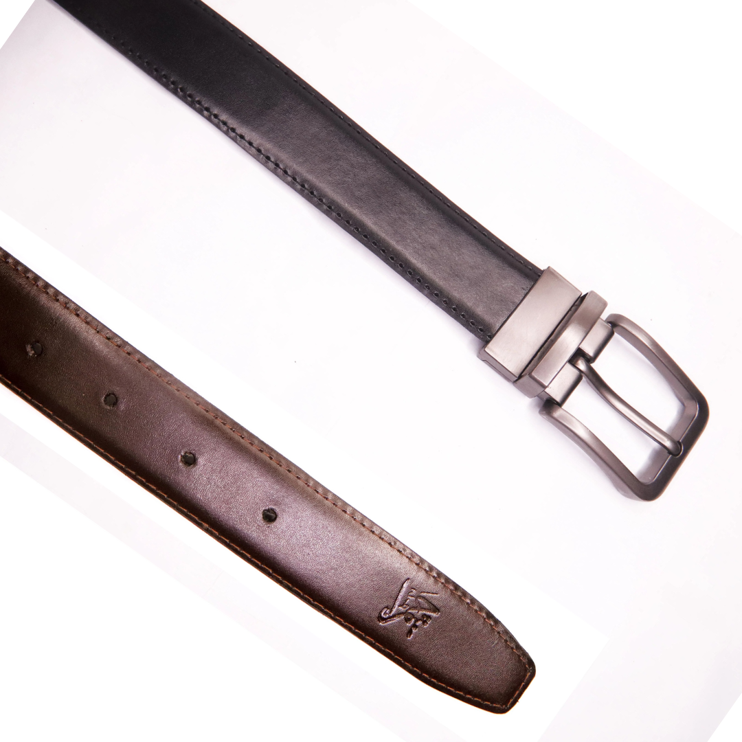 RAWALPINDI BELT Reversible 2 in 1 Leather Belt Double Sided Black And Dark Brown Formal Leather Belt.