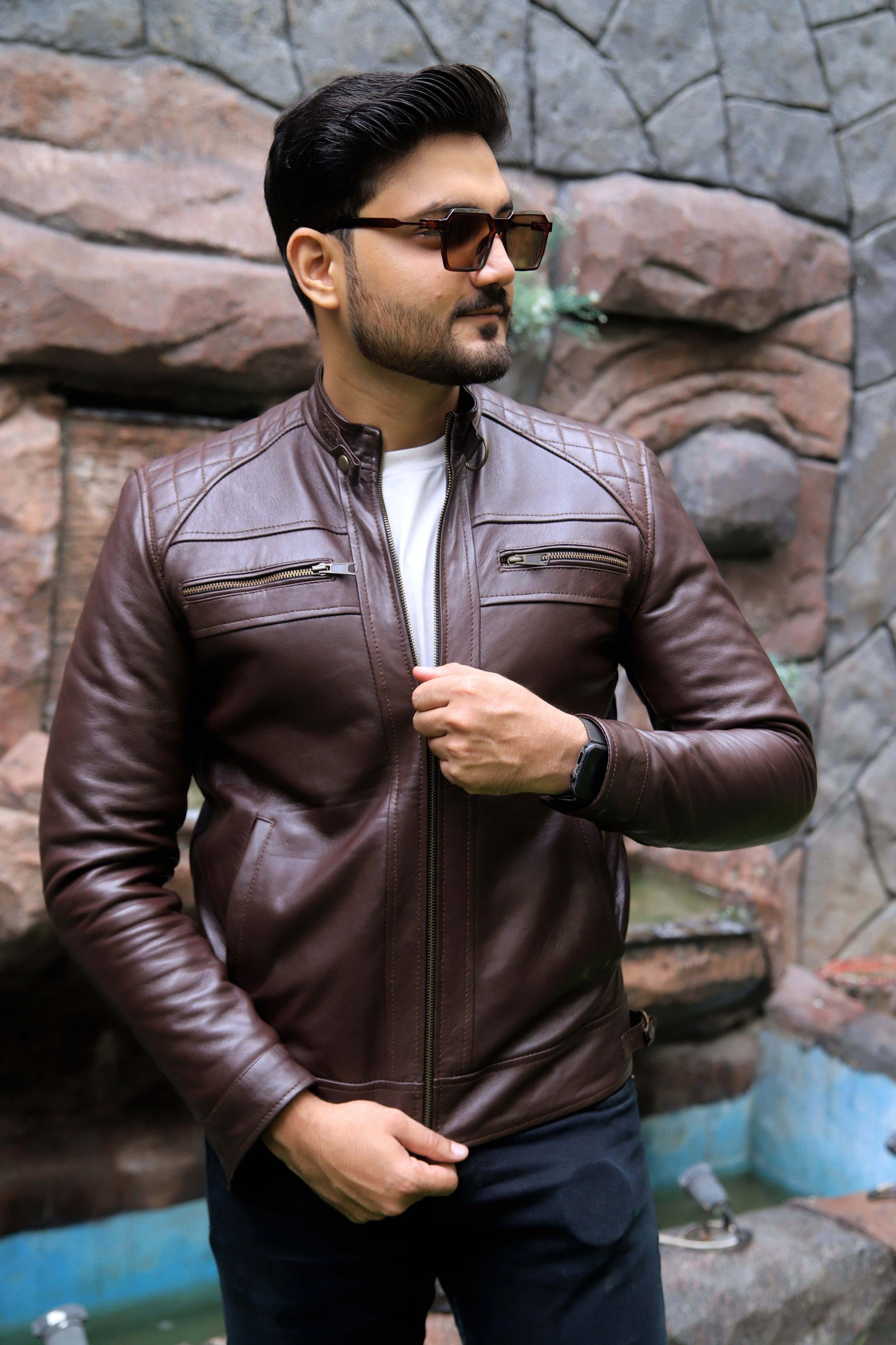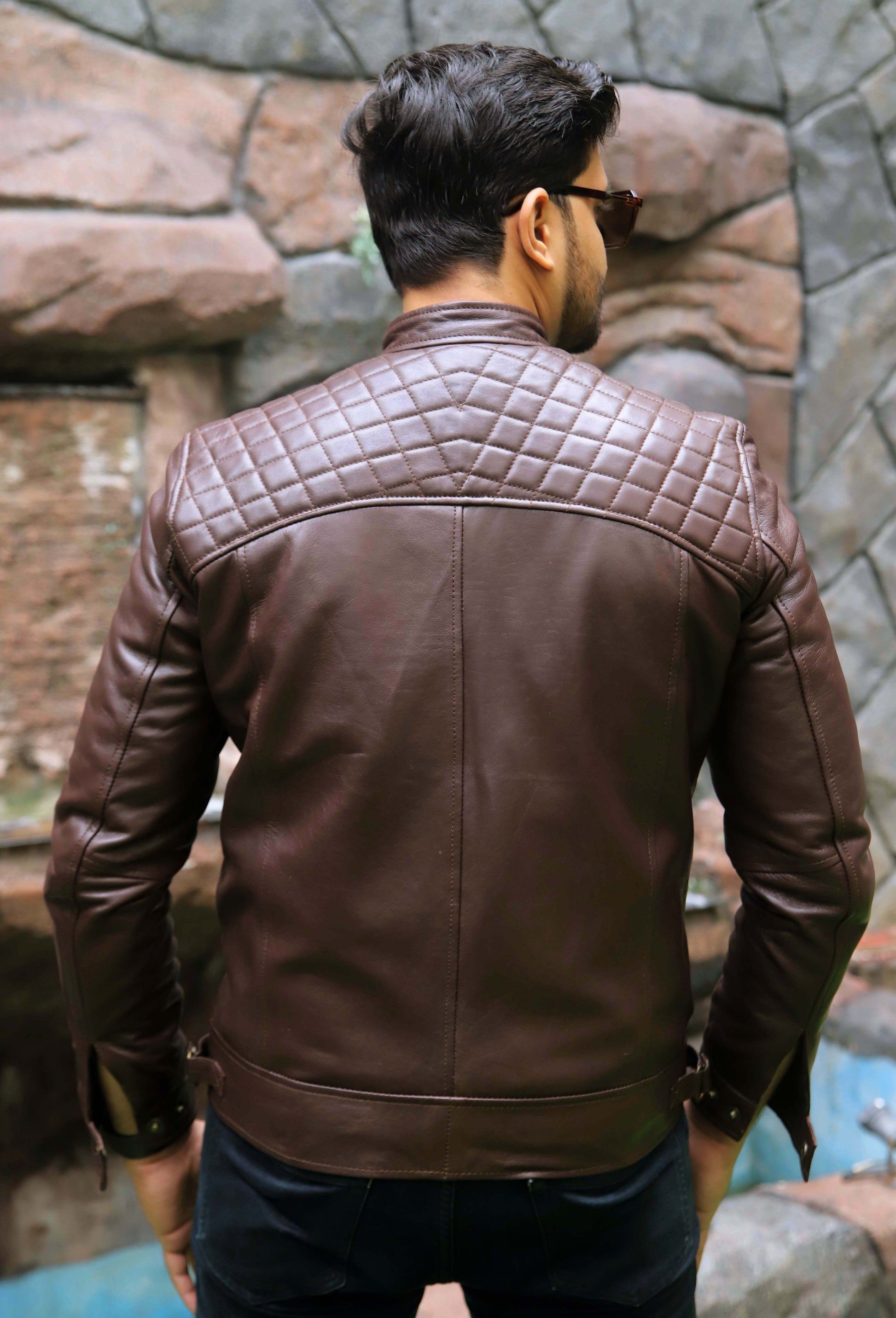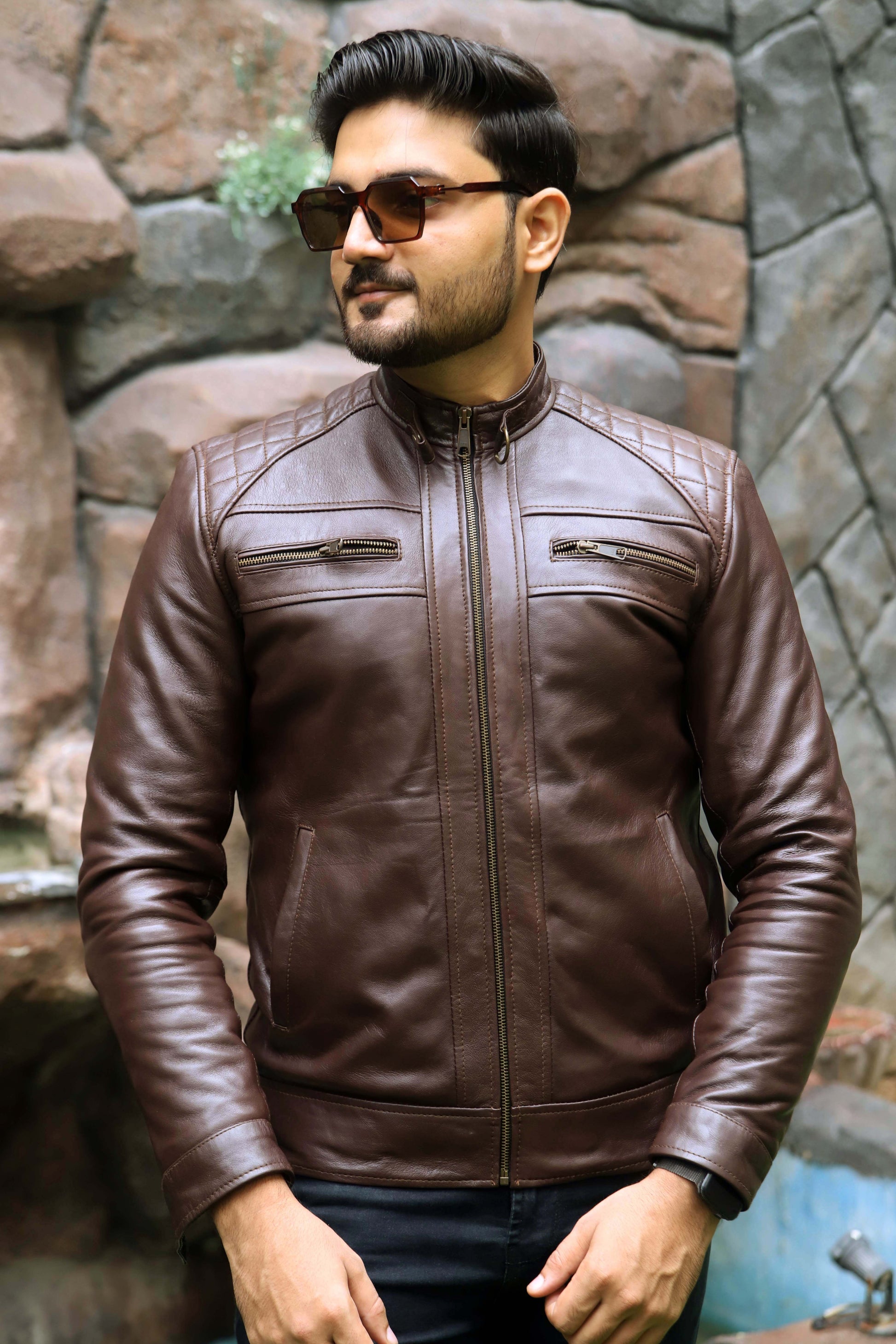 SAHIWAL JACKET Men's Leather Jacket For Men, Diamond Style Biker Jacket For Men-Brown