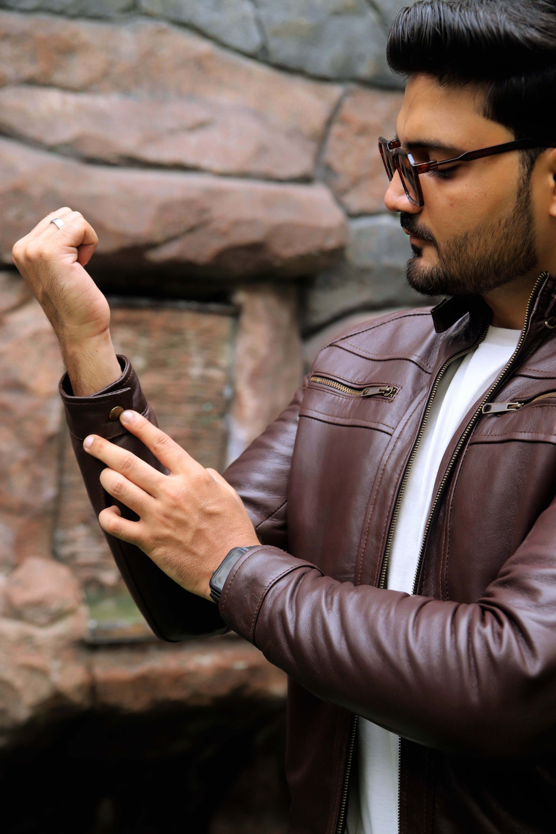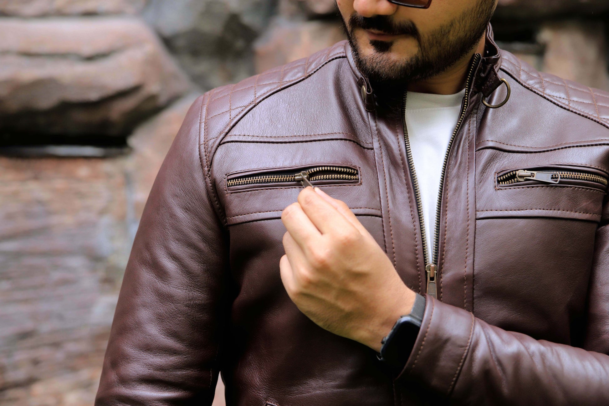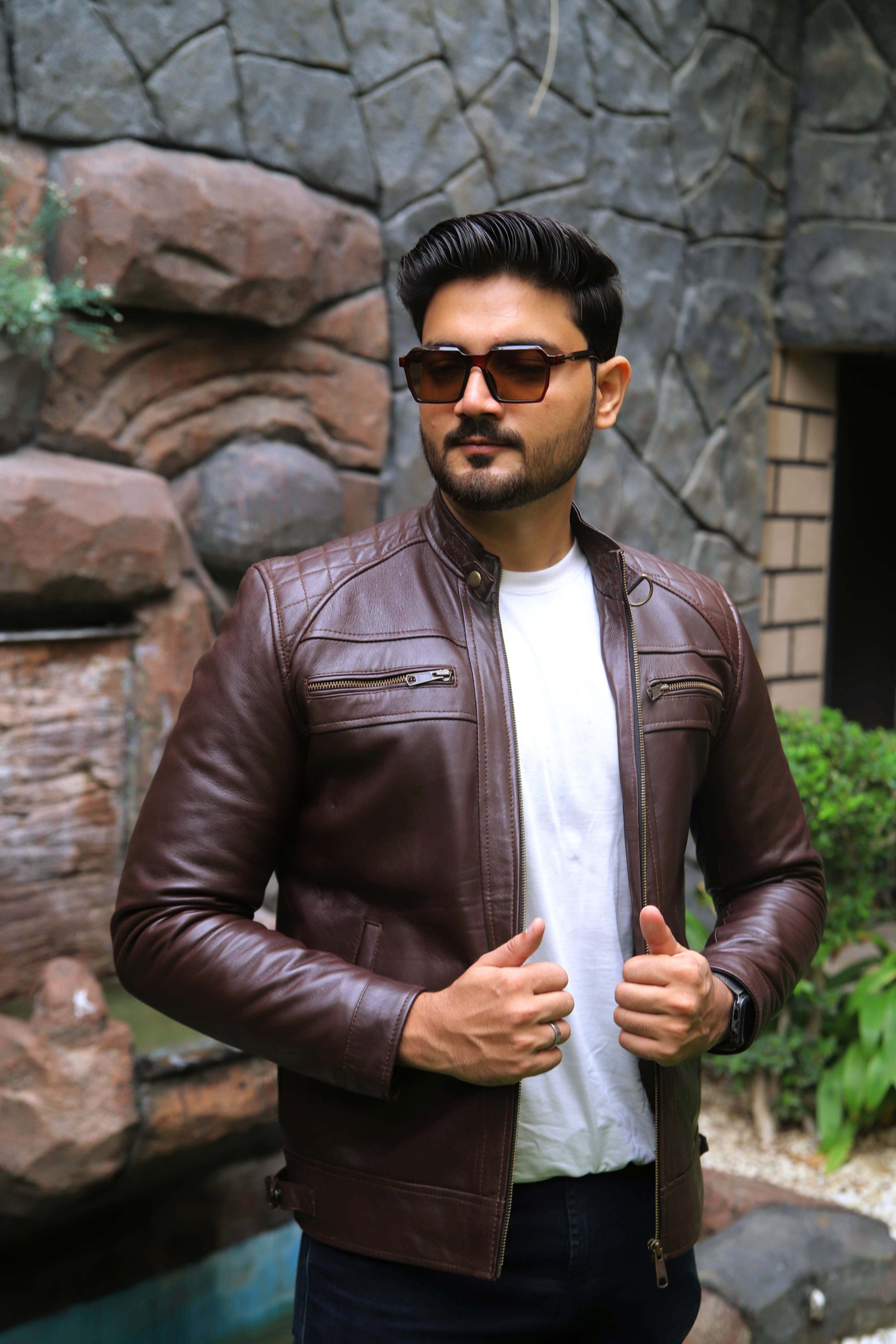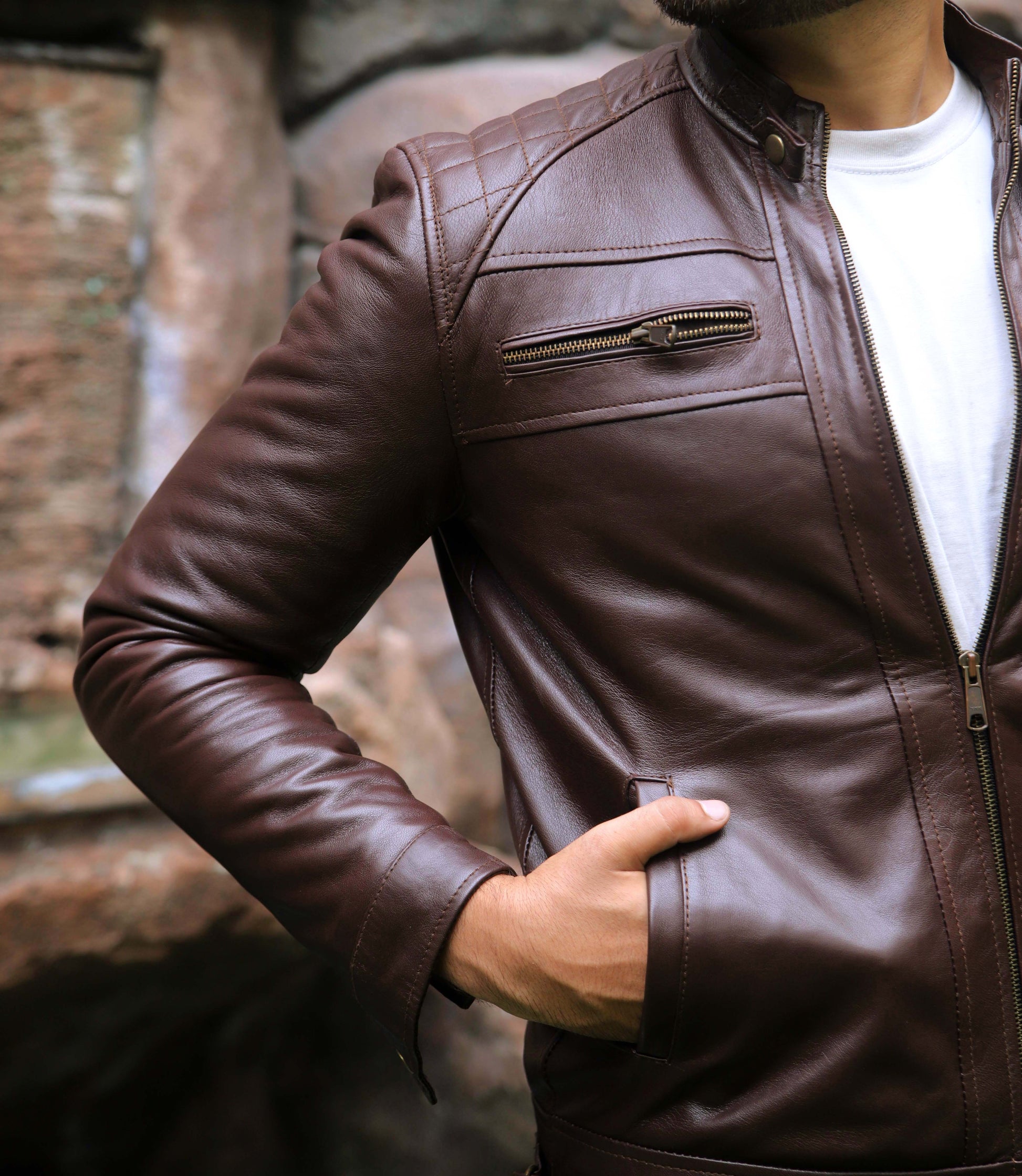 SAHIWAL JACKET Men's Leather Jacket For Men, Diamond Style Biker Jacket For Men-Brown