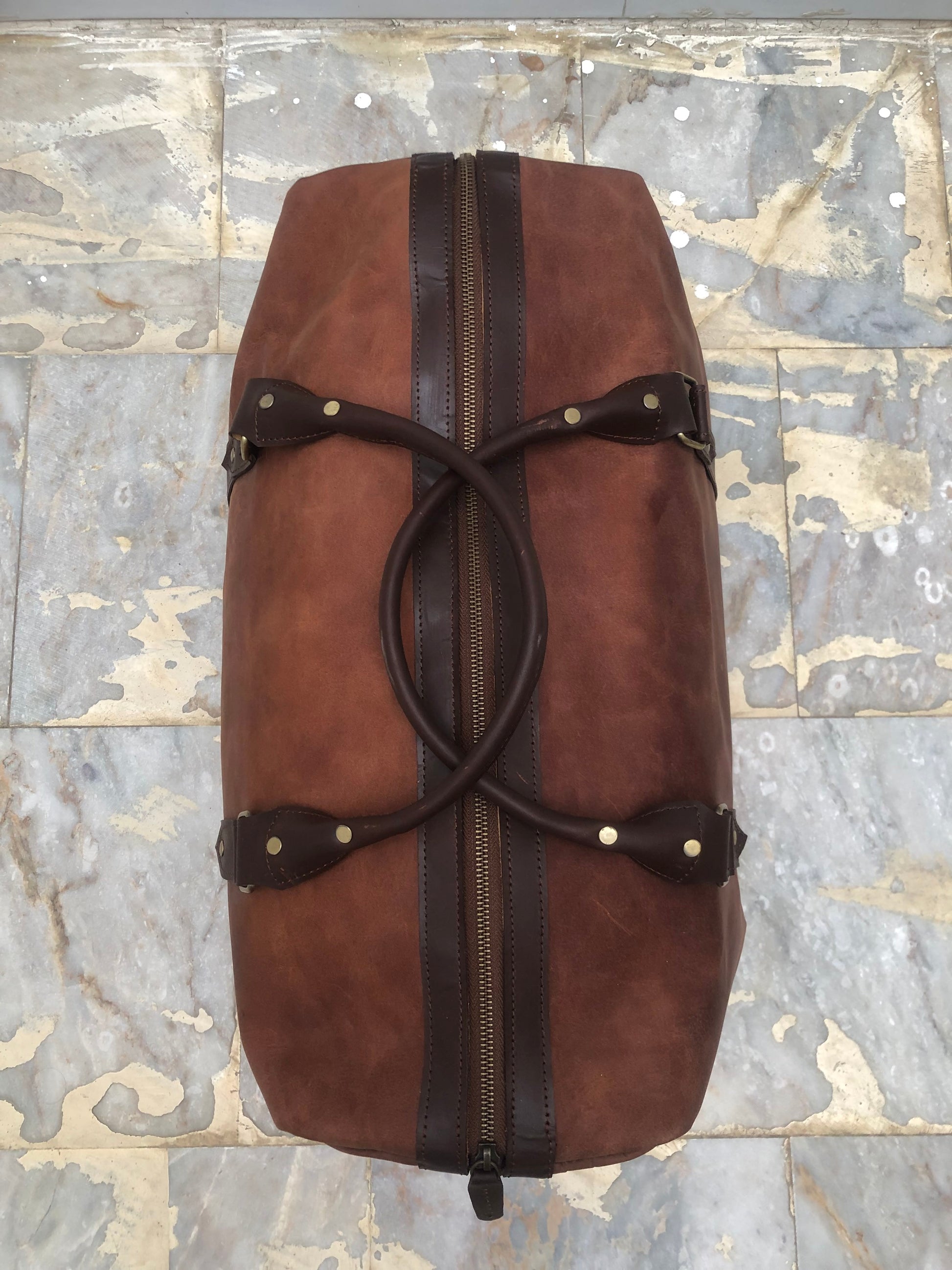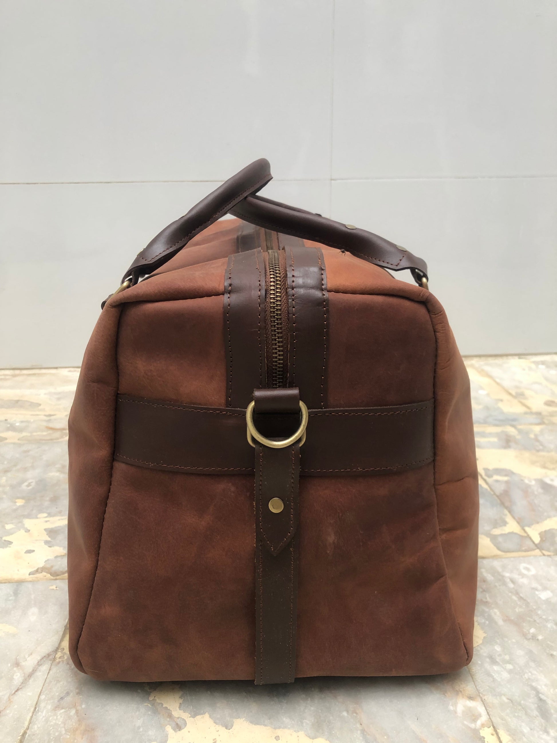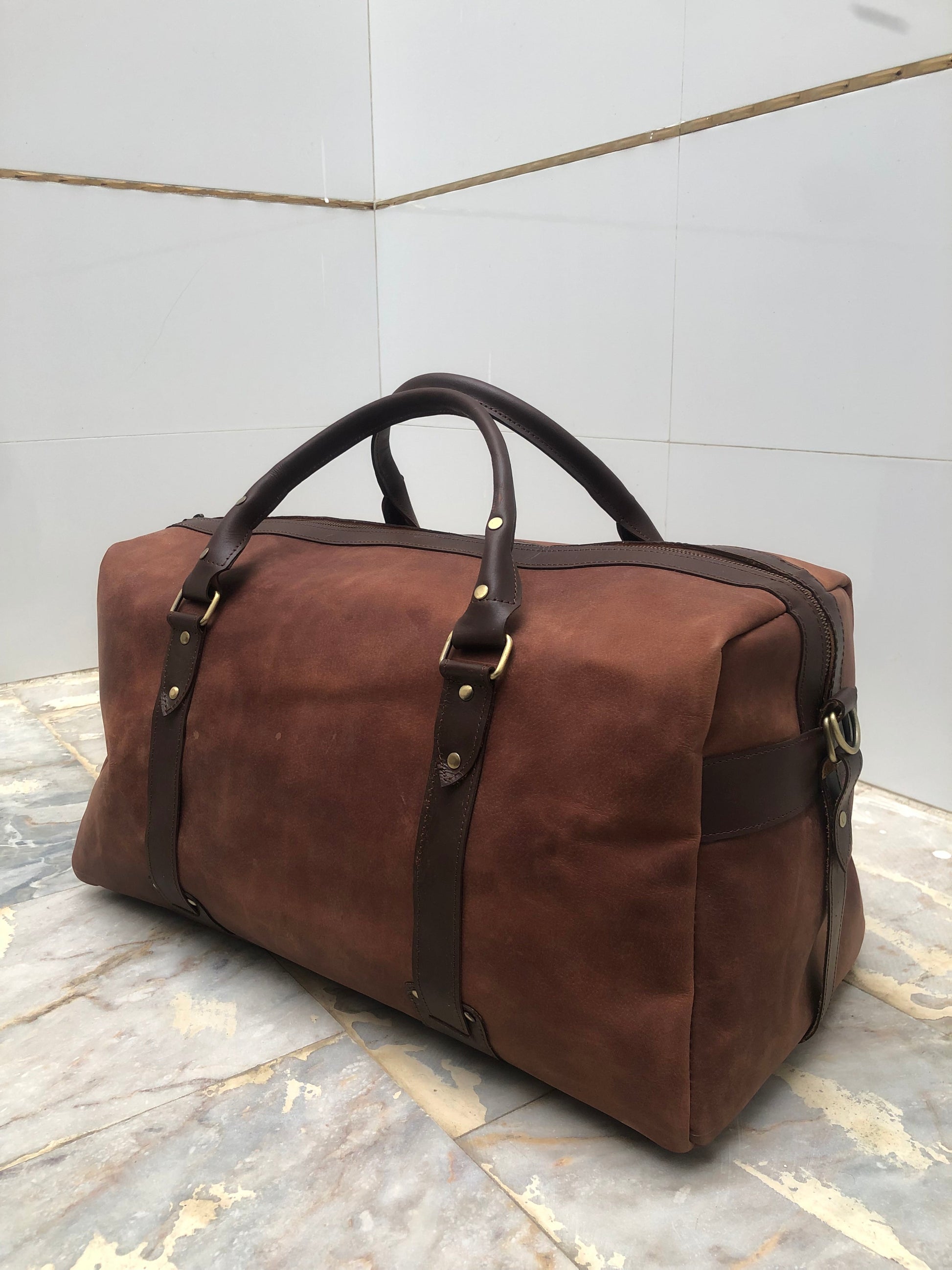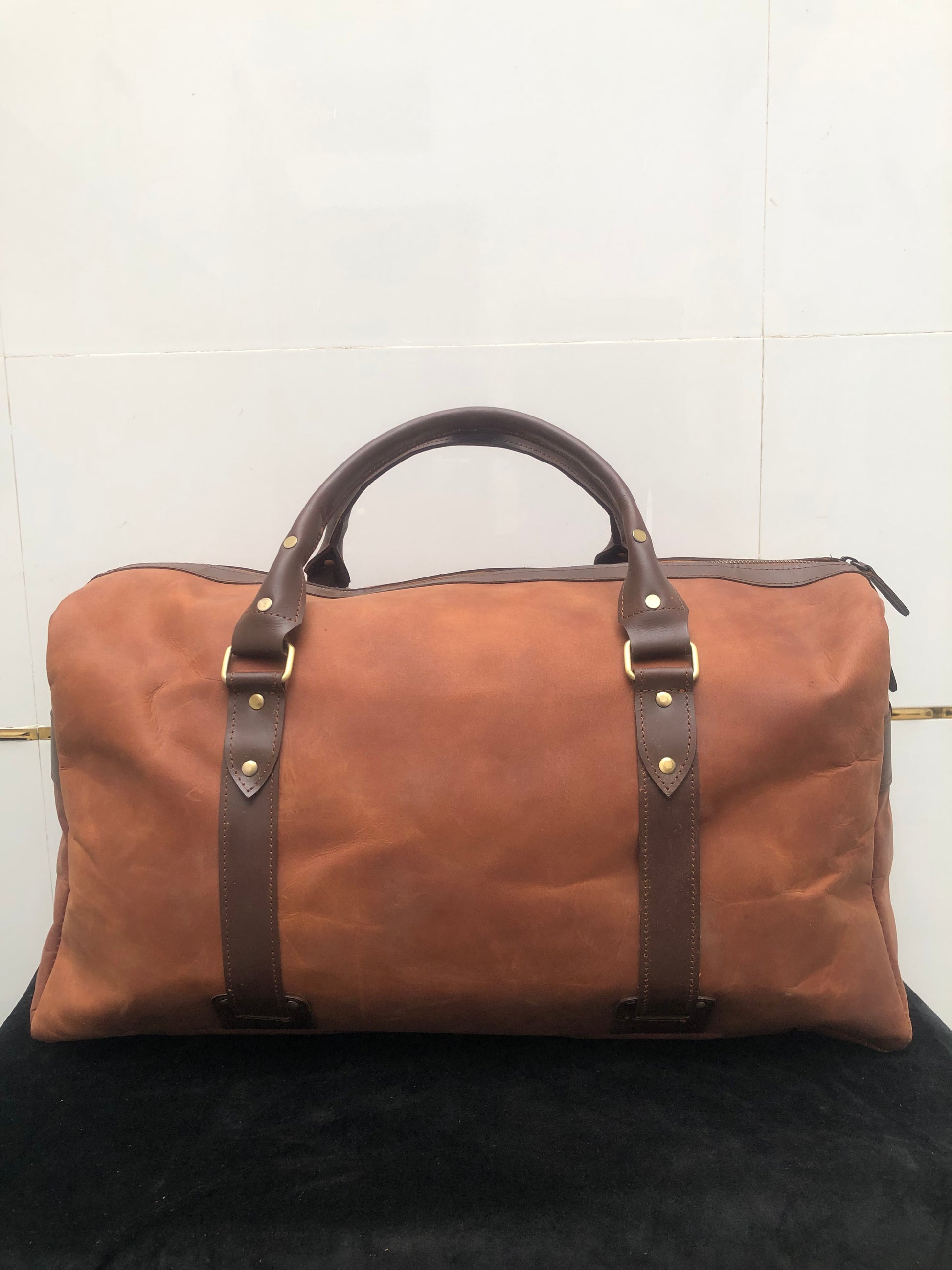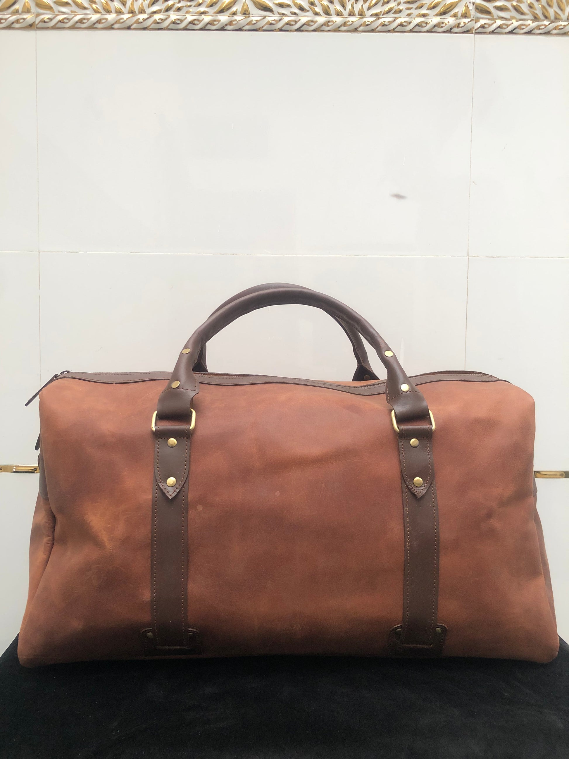 Whether you're navigating bustling city streets or escaping to the great outdoors, our Genuine Leather Duffle Bag is designed to meet your travel needs with elegance and reliability. Elevate your adventures and make a statement wherever you go with this exceptional piece of craftsmanship.